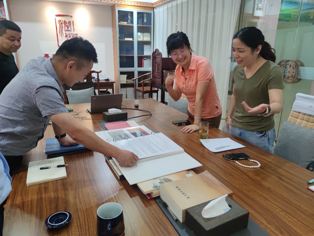 8月10日下午,上海圖書館采編中心中文文獻部徐玉花老師、馬步遙老師一行專家到訪安徽潤方文化發(fā)展有限公司,安徽省中華傳統(tǒng)文化研究會副會長、家譜研究中心主任、安徽潤方公司董事長房江傳及總經(jīng)理柯君親自接待并進行座談交流。