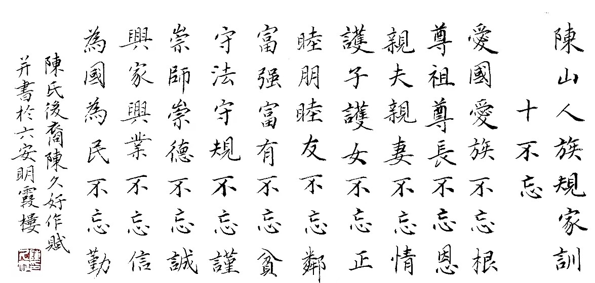 陳氏后裔陳久好作賦并書于六安明霞樓