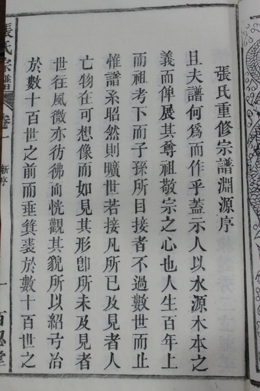 根據(jù)民國(guó)五年聚文堂梓行的《張氏重修宗譜淵源序》所敘,此次應(yīng)為六修,現(xiàn)抄錄并斷句如下,以作存考。