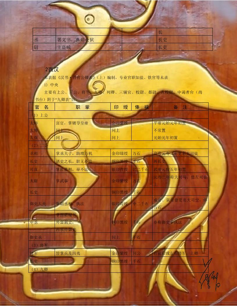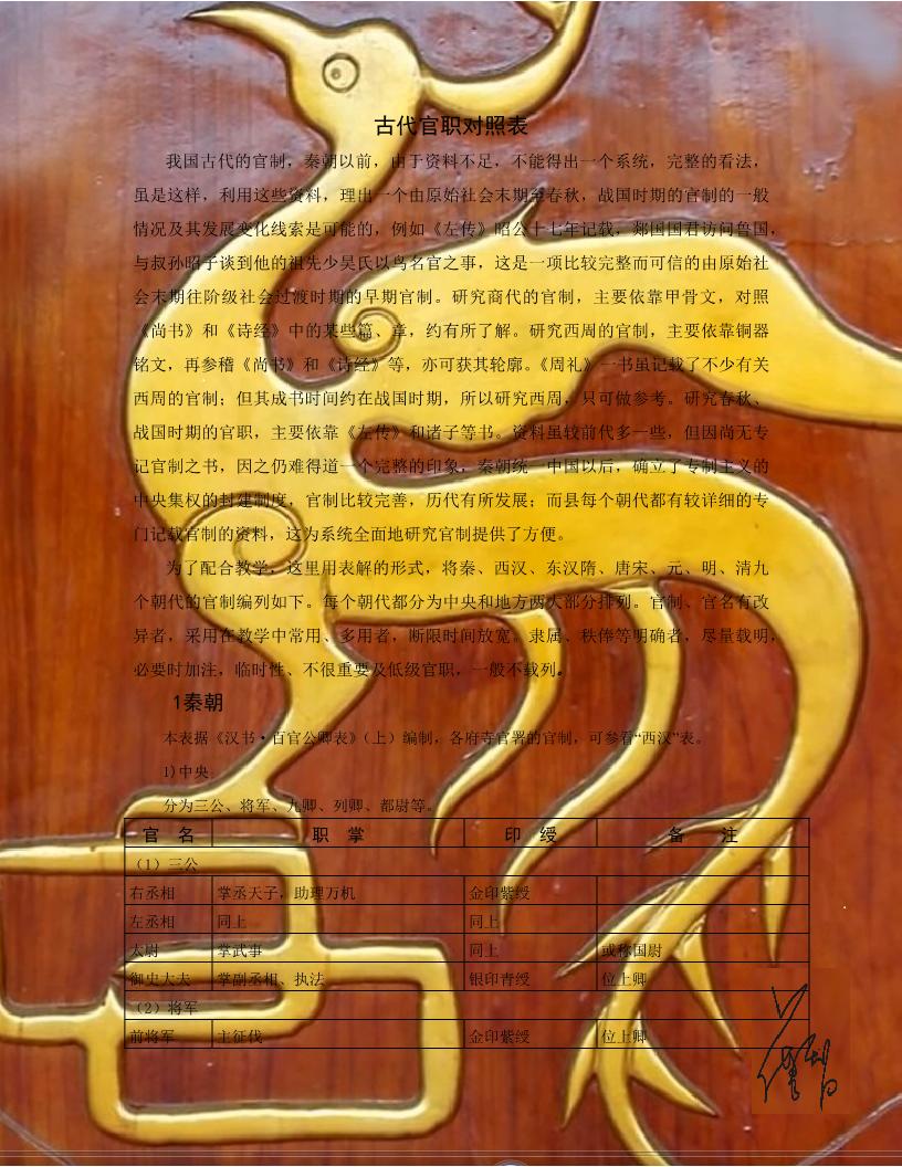 古代官職對(duì)照