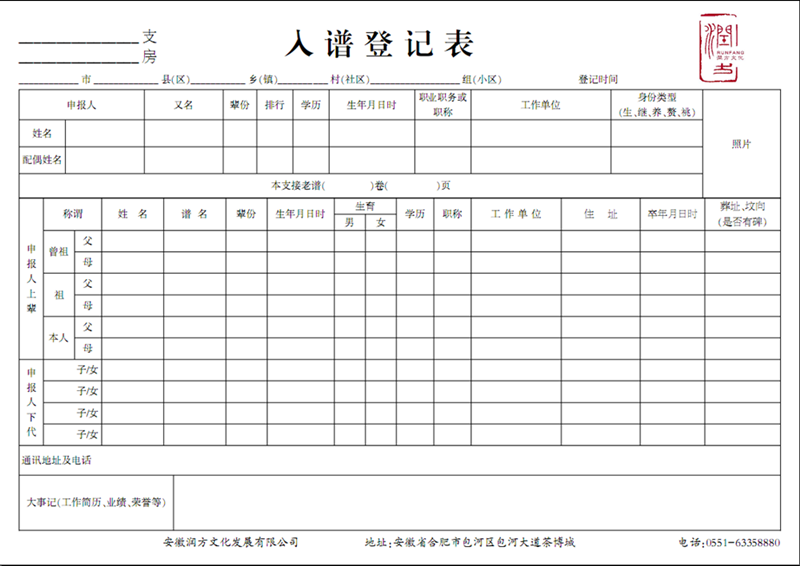 家譜入戶登記表