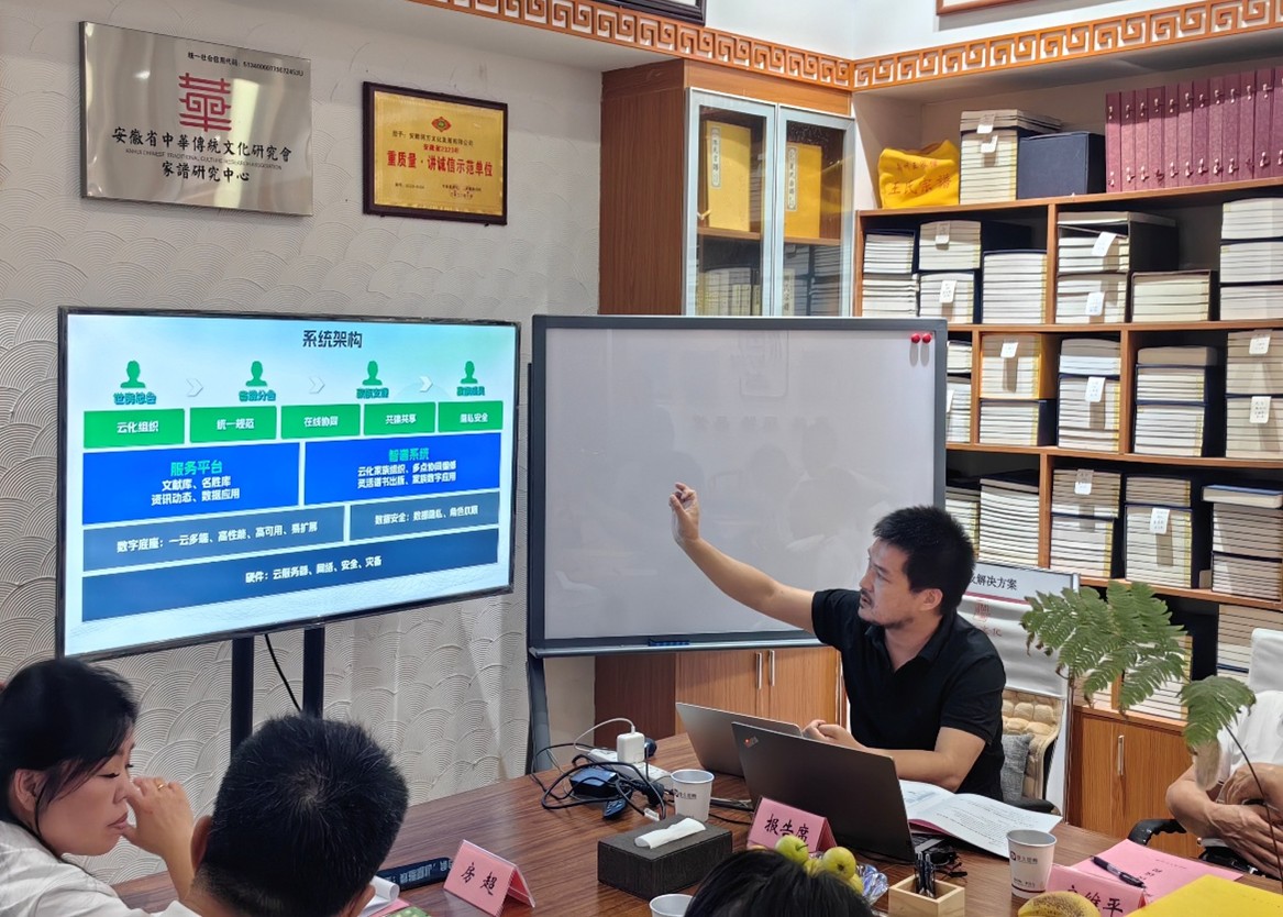 座談會(huì)上,上海潤方智譜科技有限公司總經(jīng)理程石磊詳細(xì)介紹了《中華房氏總譜》編修實(shí)施方案,他從編修原則、資料收集、體例規(guī)范等方面進(jìn)行了全面闡述,展示了編修工作的嚴(yán)謹(jǐn)性和科學(xué)性。隨后,潤方文化集團(tuán)軟件技術(shù)總監(jiān)劉良權(quán)就《中華房氏總譜》數(shù)字化解決方案進(jìn)行了匯報(bào),他通過技術(shù)演示,展示了數(shù)字化平臺(tái)在信息存儲(chǔ)、檢索、更新等方面的優(yōu)勢(shì),為傳統(tǒng)修譜工作注入了現(xiàn)代科技力量。