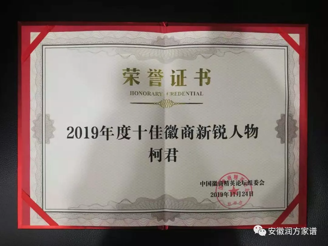 本次論壇活動中,安徽潤方文化總經(jīng)理柯君先生在眾多企業(yè)家中脫穎而出,榮膺“2019年度十佳徽商新銳人物”稱號!