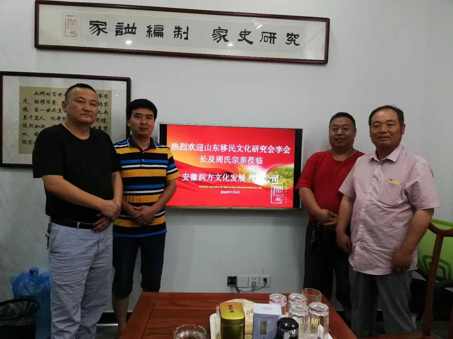 7月4日,山東移民文化研究會會長、安徽詩詞協(xié)會理事李德新,滁州市文聯(lián)主席周傳江蒞臨潤方公司交流家譜文化。雙方對傳統(tǒng)文化及移民文化的共識點高度一致。