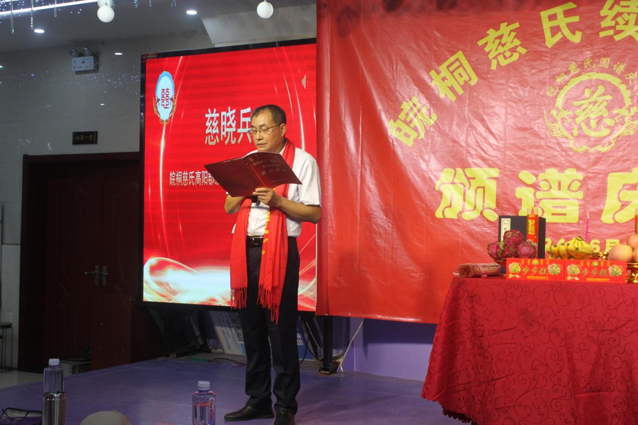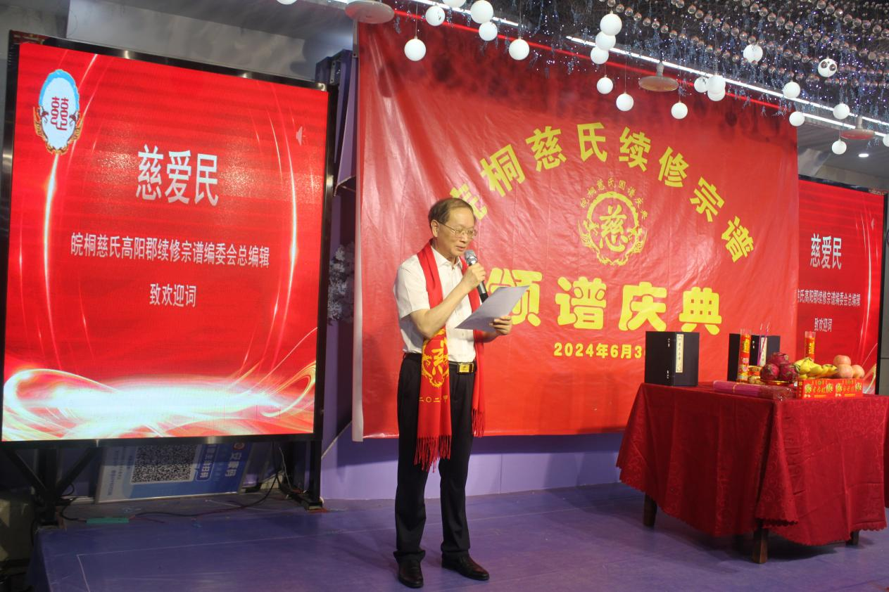 隨后,中國編輯學(xué)會副會長、《世界英才》雜志社總編輯、原中宣部《黨建》雜志社社長、《皖桐慈氏宗譜》編委會總編輯慈愛民先生宣布慶典開始,并致歡迎辭。慈總編首先回顧此次家譜編修的艱辛過程,對每一位在家譜續(xù)修工作中付出勞動的族人表示感謝,并從家族長久發(fā)展的高度,強調(diào)家譜“不僅是簡單地記錄家族成員的姓名和生辰,更是梳理我們家譜發(fā)展脈絡(luò)、歷史傳承,重溫家規(guī)家訓(xùn),重振家族榮耀的重要形式?!?/span>