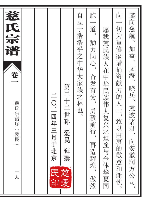 盛世修譜。在此時此刻,我向慈氏的先賢致敬!向慈氏宗親的朋友們祝福!